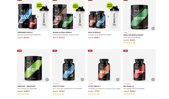 Gleich vorweg: Neosupps Produkte gibt es nicht bei dm, Rossmann oder anderen Drogerien. Der Verkauf läuft ausschließlich über den eigenen Onlineshop und Amazon. Das hat Vor- und Nachteile. Einerseits kannst du die Produkte nicht vor dem Kauf anfassen oder riechen. Andererseits gibt es online häufig Rabattaktionen, die es im stationären Handel so nicht gäbe.