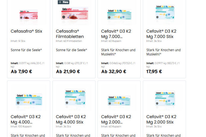 Die Produktpalette von Cefak.com aus Kempten im Allgäu sind sich genau an solche Situationen – mit Safran-Extrakten, Vitamin-Kombinationen und pflanzlichen Wirkstoffen.