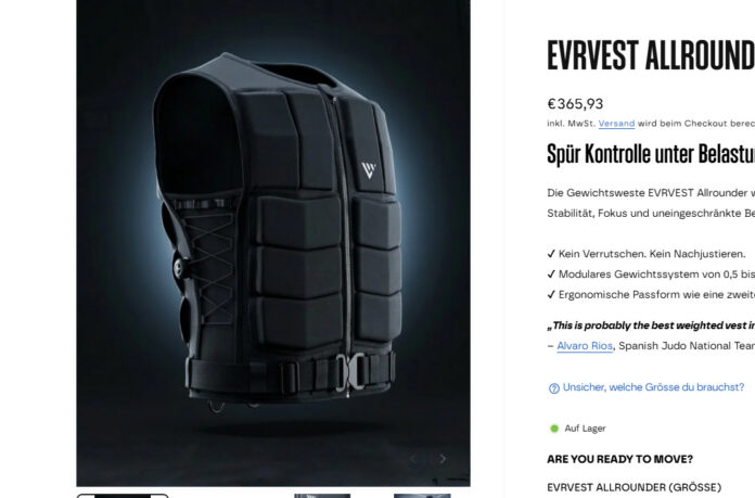 Der Preis liegt bei 365,93 Euro für das Allrounder-Modell mit 10 kg Startgewicht. Das ist kein Schnäppchen, aber verglichen mit dem, was andere Spezialwesten im Profi-Segment kosten, bewegt sich EVRVEST im vertretbaren Bereich, sofern das Produkt hält, was es verspricht.