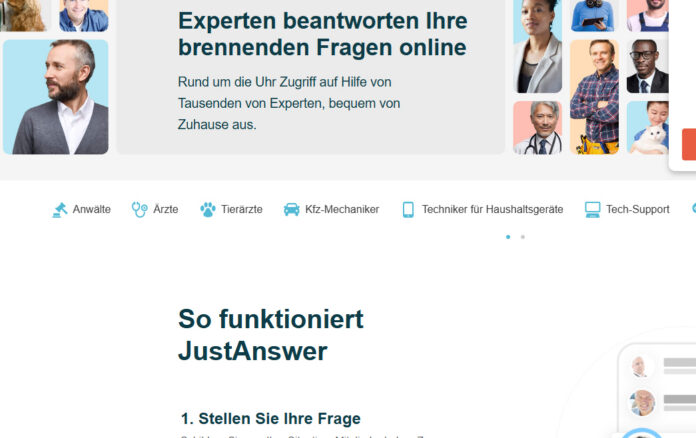 Die Plattform kommt ursprünglich aus den USA und ist dort schon länger aktiv. In Deutschland läuft sie über justanswer.de und du hast dort Zugang zu deutschsprachigen Fachleuten. Ob Steuerberater, Tierarzt, Kfz-Mechaniker oder Dermatologe: Die Auswahl ist ziemlich breit gefächert. Auf der Website sieht man Profile mit Infos zur Qualifikation und der Anzahl zufriedener Personen.