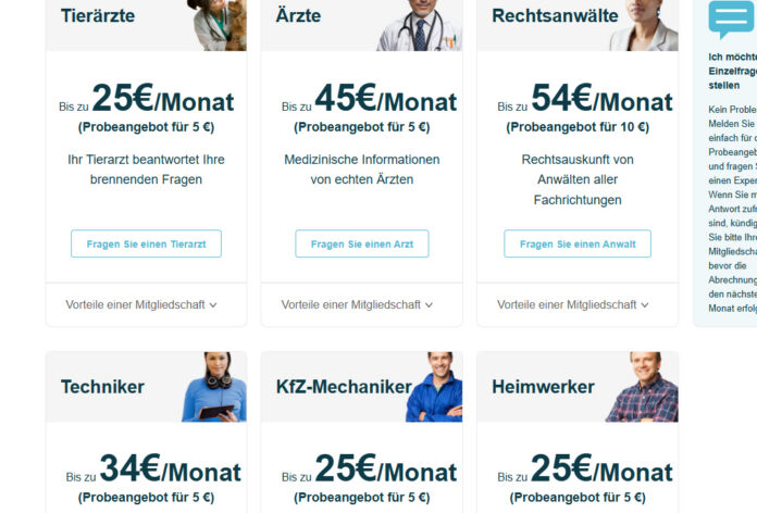 Die 24/7 Verfügbarkeit ist definitiv ein Pluspunkt. Auch die Bandbreite an Fachgebieten ist beachtlich: Recht, Medizin, Technik, Steuern, Veterinärmedizin und einiges mehr. Für Menschen, die regelmäßig solche Fragen haben, könnte sich eine Mitgliedschaft sogar lohnen.